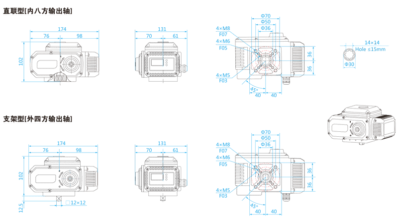 3、直聯(lián)型安裝時(shí),由于孔深小于15mm,如果閥門的輸出軸大于15mm則需要切割。