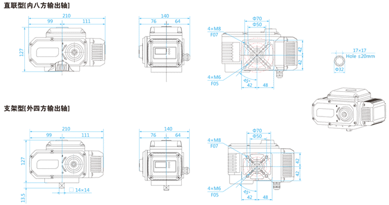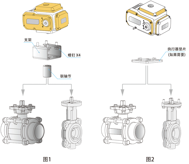 3、直聯(lián)型安裝時,由于孔深小于20mm,如果閥門的輸出軸大于20mm則需要切割。