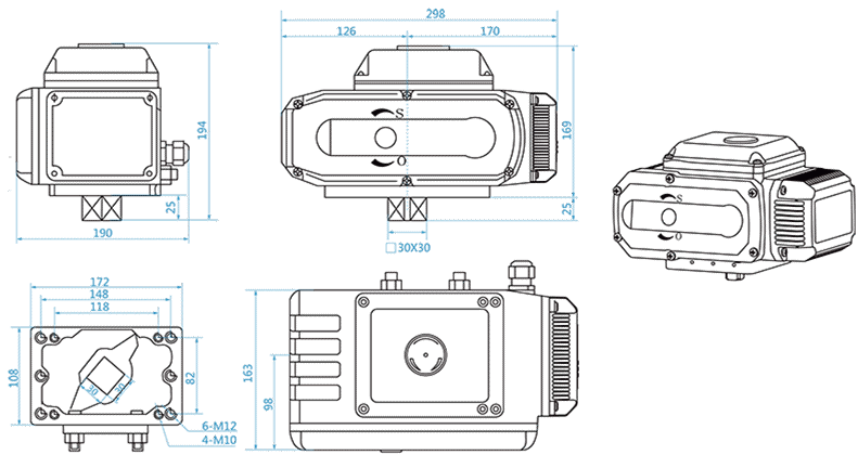 2、配套蝶閥時,蝶閥的最大扭矩值≤800/1300Nm,因為蝶閥正常安裝后,其扭矩值會增加10-20%左右。