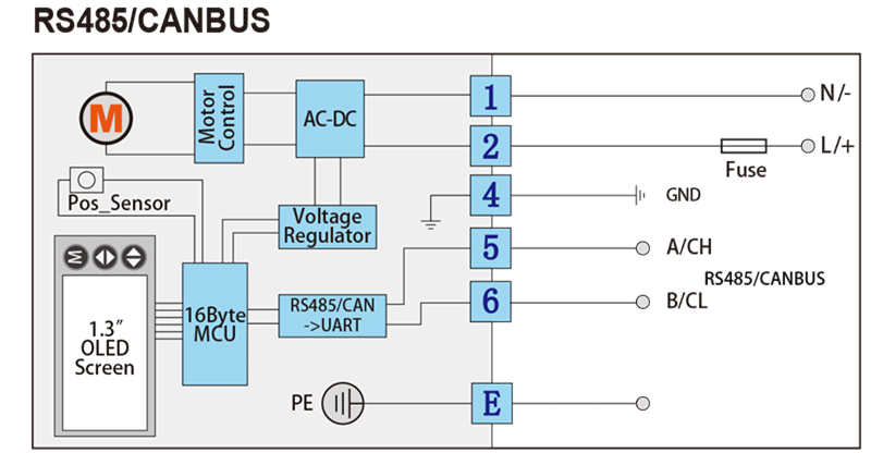 采用1.3寸OLED大屏液晶,實時顯示波特率,ID地址,閥門開度及其外部控制命令。