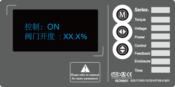 采用1.3寸OLED大屏液晶,無視角限制,高亮度,節(jié)能環(huán)保,實時顯示閥門開度及其外部控制命令,約5分鐘后自動進(jìn)入休眠狀態(tài),并在休眠期間提示位置狀態(tài)及其控制命令。