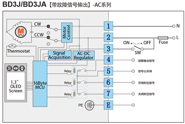 注3:故障報警輸出端,此功能可選配:控制方式為BD3JA。