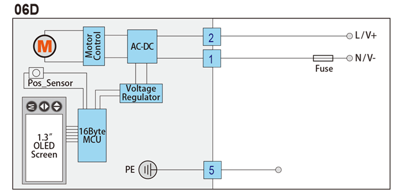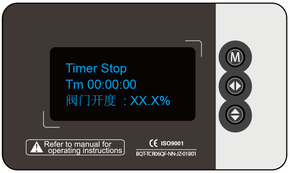 采用1.3寸OLED大屏液晶,無視角限制,高亮度,節(jié)能環(huán)保,實時顯示閥門開度及其外部控制命令,約5分鐘后自動進入休眠狀態(tài),并在休眠期間提示位置狀態(tài)及其控制命令。