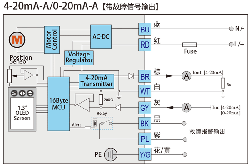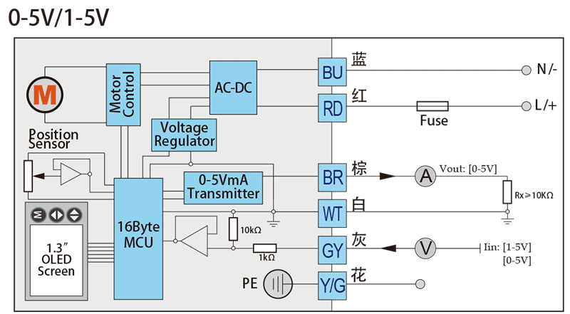 控制方式: 4-20mA、0-20mA、0-5V、1-5V、0-10V、2-10V