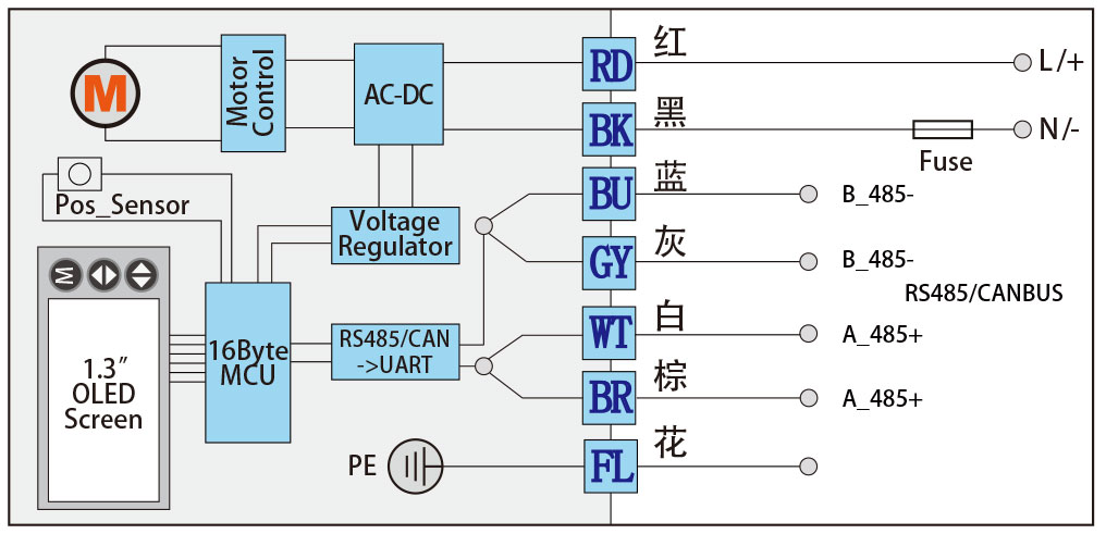 采用1.3寸OLED大屏液晶,實時顯示波特率,ID地址,閥門開度及其外部控制命令。