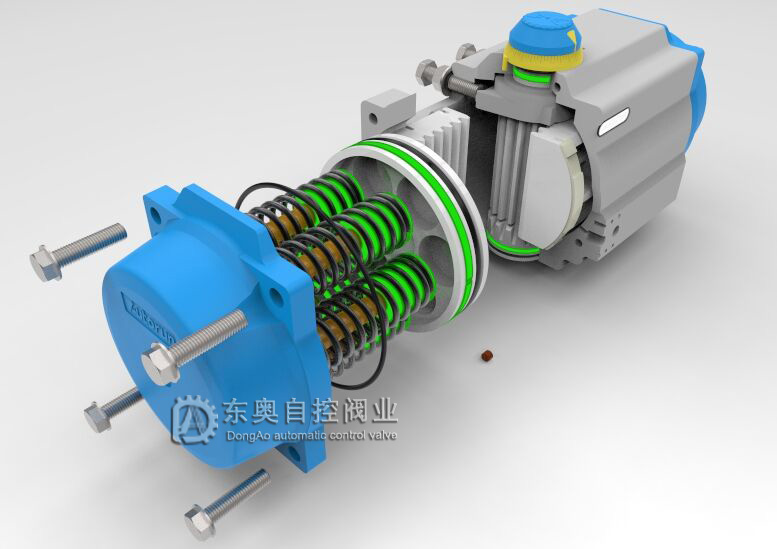 氣動執(zhí)行器與閥門安裝、連接尺寸根據(jù)國際標準ISO5211、DIN3337和VDI/VDE3845進行設(shè)計,可與普通氣動執(zhí)行器互換。